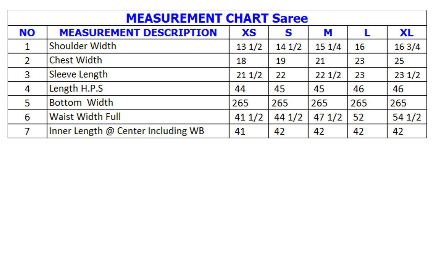 | Sleeve Length Full | 21.5 | 22 | 22.5 | 23 | 23 |
